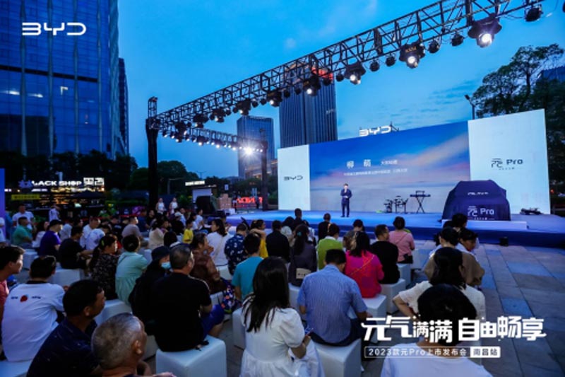 元?dú)庑乔?,滿電啟航。6月11日,#元?dú)鉂M滿自由暢享#2023款元pro在紅谷灘萬達(dá)外場震撼上市,眾多媒體和嘉賓如約而至,一同見證2023款元pro的煥耀新姿。